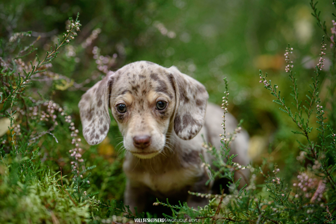 (Geboren um 19:08Uhr mit 196g, Chocolate Tan Dapple, Rüde, Langhaar)